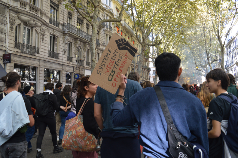À quelques pas, Valentin, pancarte à la main, marche seul. Ses amis n’ont pas pu le rejoindre, mais il tenait à battre le pavé malgré tout. « Le budget, c’est une énorme blague », lâche-t-il avec un sourire amer.